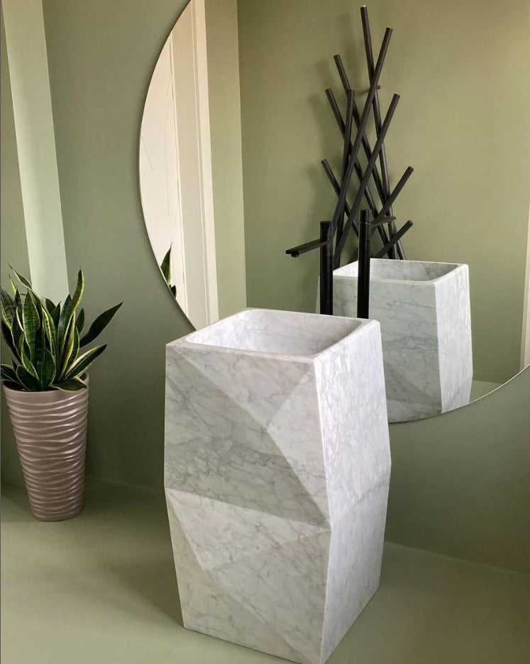 Lavabo monoblocco di design in marmo di Carrara
