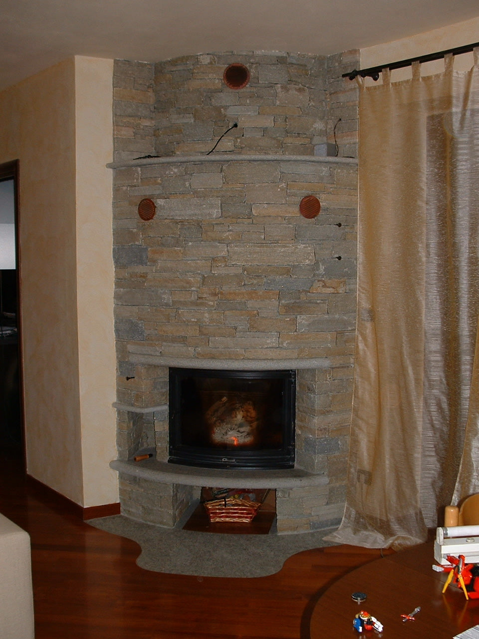 Caminetto rivestimento in topure, colore misto.